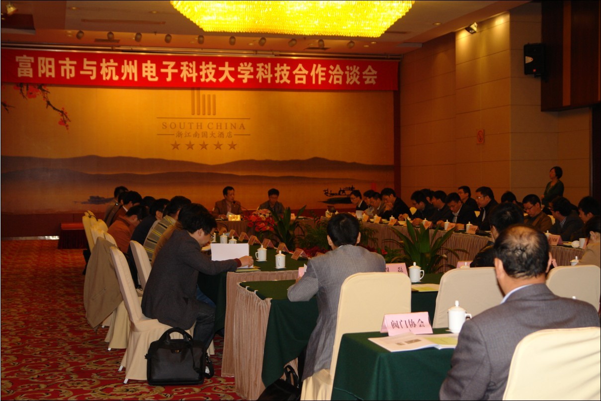 (杭州電子科技大學(xué)25位專家教授與我市38家企業(yè)和協(xié)會(huì)的負(fù)責(zé)人開展合作洽談現(xiàn)場(chǎng))