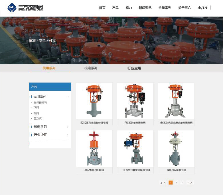 網(wǎng)站頂部菜單欄包括:公司產(chǎn)品、公司實(shí)力、公司新聞、合作案例等快捷按鈕,使用戶一步到位,快速找到所需信息。例如在公司產(chǎn)品頁面下,設(shè)有民用系列、核電系列和軍用系列等三大系列產(chǎn)品分類(二級欄目)。當(dāng)然用戶也可以在本頁面的行業(yè)應(yīng)用類別中,查找相關(guān)產(chǎn)品。在每個產(chǎn)品的介紹頁面,除了詳細(xì)的文字說明和圖片外,用戶可以立即下載PDF格式的樣本和維護(hù)手冊,無需注冊,大大提高了網(wǎng)站親和力和效率。